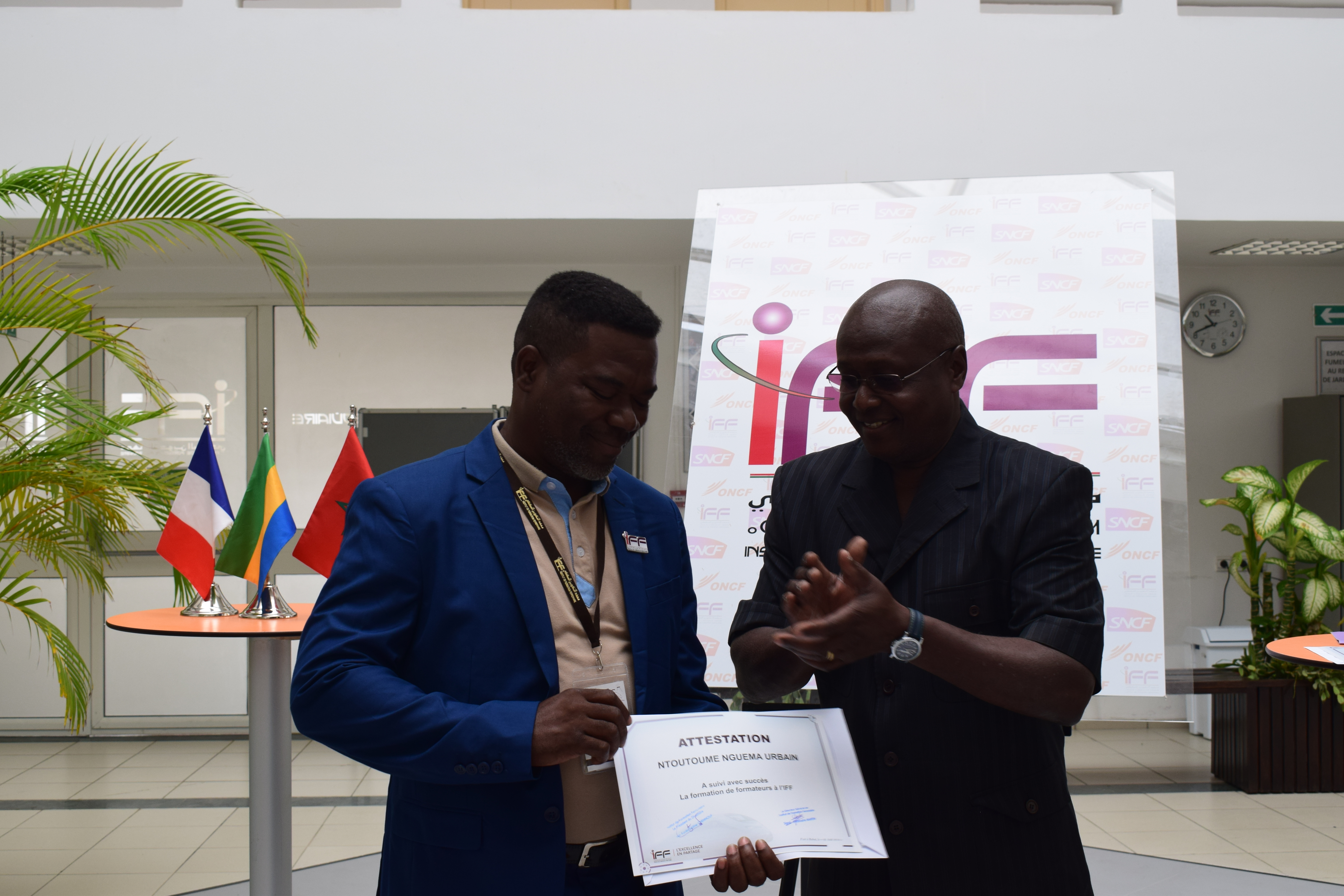 « Nous ne pouvons qu’être fiers de la prestation de l’ensemble des groupes de participants et du bilan à mi-parcours de notre projet, qui avance finalement à pas de géant. Je termine mon propos en remerciant, au nom de la SETRAG et de celui de l’Etat Gabonais, toute l’équipe d’animateurs qui a œuvré au cours de cette étape, à la réussite de ce projet, qui tient tant à cœur la SETRAG, au regard du contexte ferroviaire du moment, contexte qui fait de la formation la priorité des priorités. Par ma voix, la SETRAG adresse ses sincères remerciements ainsi que sa profonde gratitude à l’IFF, pour son expertise et toute sa contribution dans la montée en compétences de cette ressource humaine. » Elie AMBAMANE, Chef de projet- SETRAG.