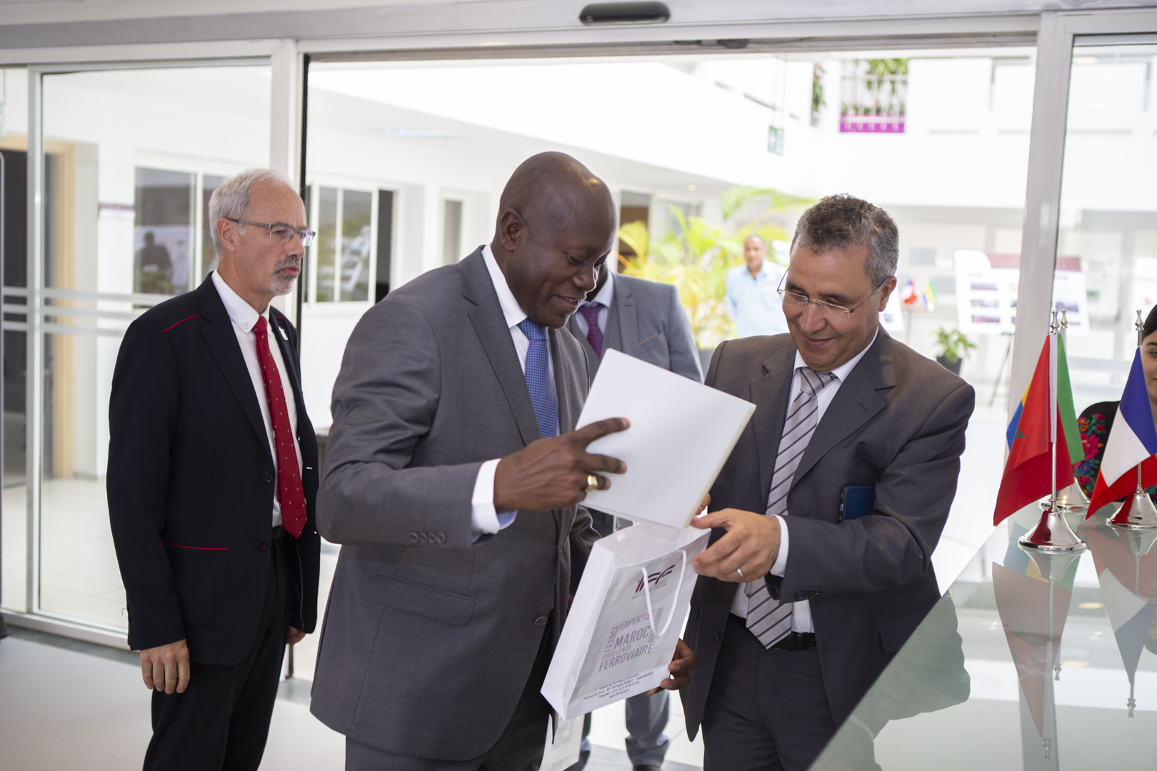 L’IFF a eu l’honneur de recevoir le Jeudi 25 Juillet la Délégation ministérielle du transport du Gabon constituée de Sosthène Akendengue MAVIOSA, Président de l’Autorité de Régulation des Transports Ferroviaires (ARTF), Anoue TOUROU KIKI Léandre Thomas, Secrétaire exécutif de l’ARTF, NZIENGUI Jean Aimé, Directeur Technique et de l’expertise ferroviaire accompagnés de deux représentants de l’ambassade du Gabon au Maroc et de deux journaliste de la RTG.