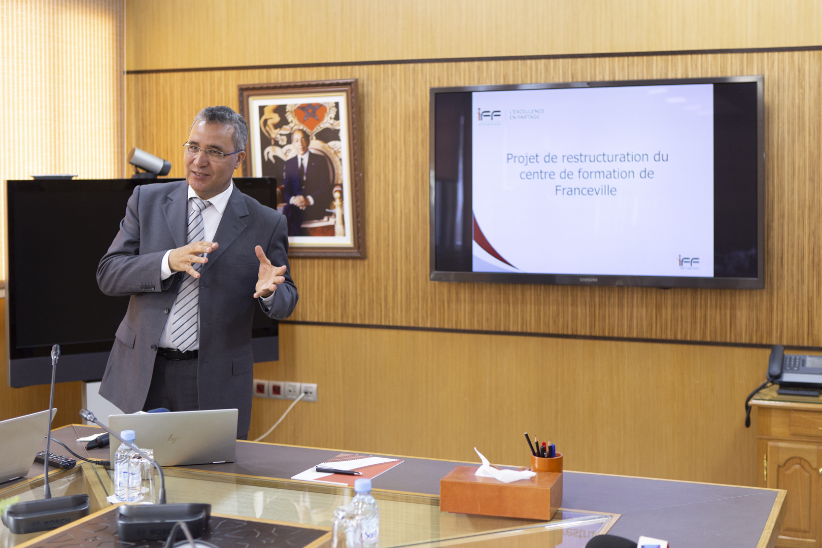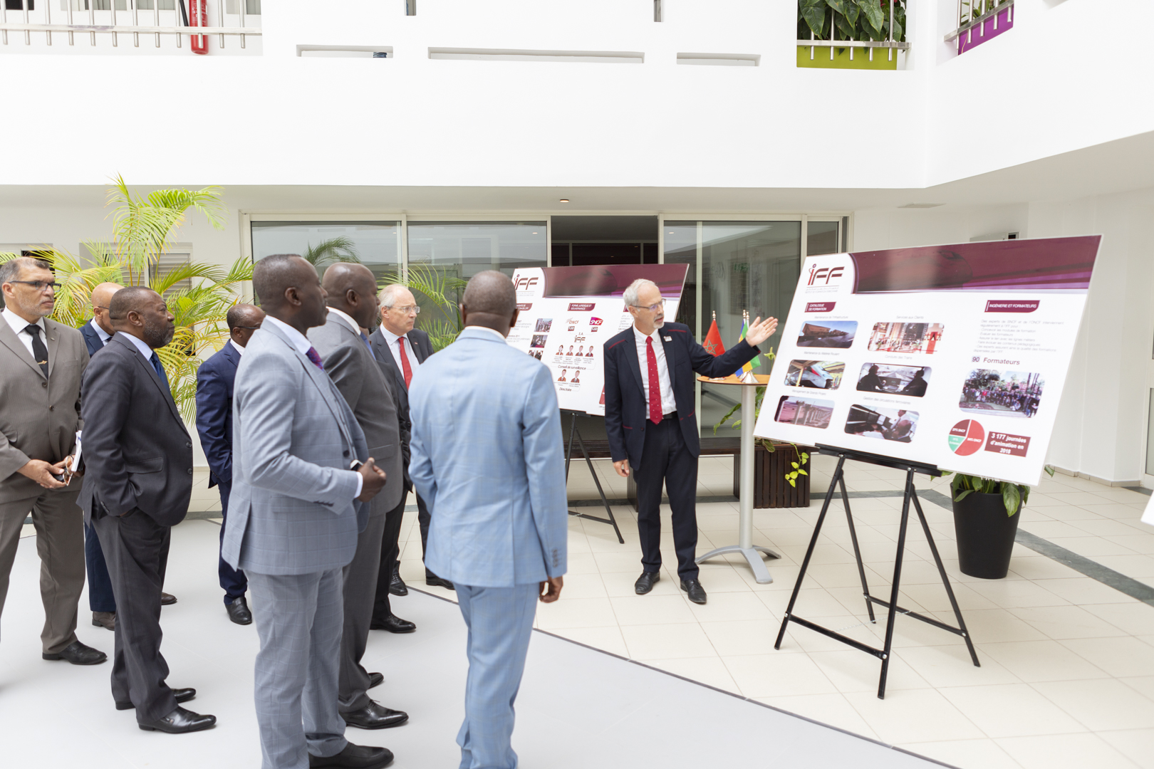 Au programme, les invités de l’IFF ont été accueillis au siège de l’ONCF où on leur a présenté la stratégie ferroviaire du Maroc et ses chiffres clé suivie par une présentation du projet de restructuration du Centre de Formation et de Perfectionnement de Franceville (Projet lancé en Mars 2019 avec la SETRAG) par le Président du Directoire de l’IFF.